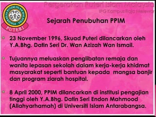 Amirahbatrisyiabaharudin menerbitkan BUKU LOG PERGERAKAN PUTERI ISLAM MALAYSIA PPIM pada 2021-07-13. Beriman kepada Allah Mukmin dan beragama Islam Muslim yang baik. Antara aktiviti-aktiviti badan beruniform Pergerakan Puteri Islam Malaysia yang dilaksanakan saban hari termasuklah aktiviti perkhemahan memasak menjahit dan lain-lain.